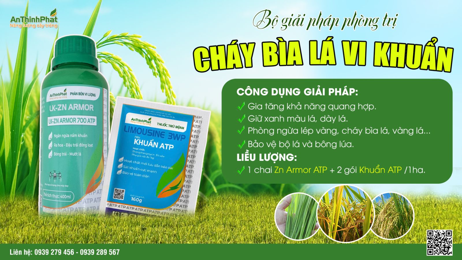Đối với bệnh cháy bìa lá lúa, An Thịnh Phát khuyến cáo quý nhà nông sử dụng bộ ba sản phẩm bao gồm Zn Armor ATP + Khuẩn ATP. Giải pháp này không chỉ giúp quý nhà nông phòng trừ kịp thời bệnh vàng lá, cháy bìa lá mà còn giải quyết được các loại nấm bệnh gây hại trên cây trồng.